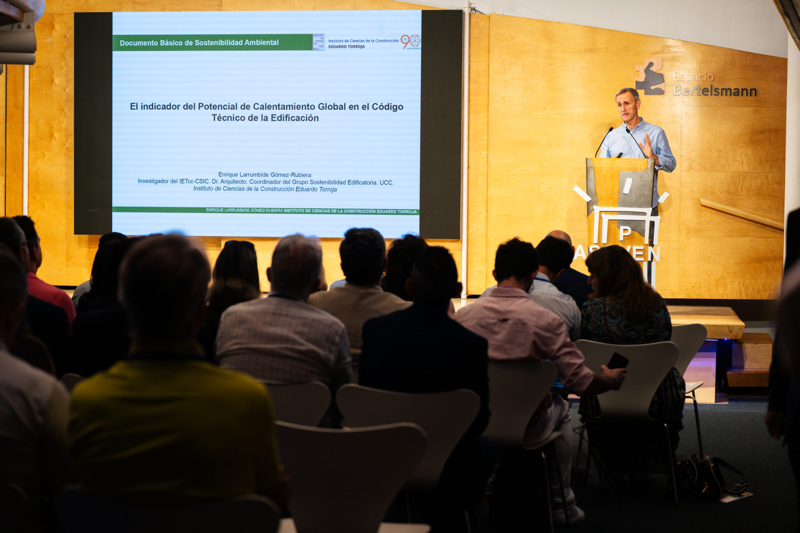 En el ámbito nacional, desde el Instituto de Ciencias de la Construcción Eduardo Torroja, se abordaron algunos de los cambios normativos vinculados a la transposición de la EPBD. En este sentido, Enrique Larrumbide hizo referencia al HSA 1 Potencia de Calentamiento Global, que entrará en vigor el 1 de enero de 2028.